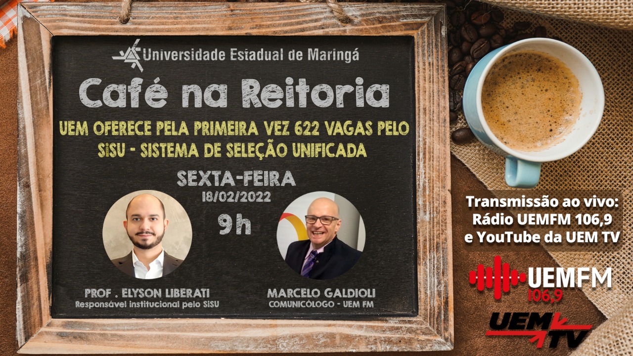 Café na Reitoria aborda a participação da UEM no SiSU com 622 vagas uemfm Notícias 16 Fevereiro 2022 Acessos: 1038