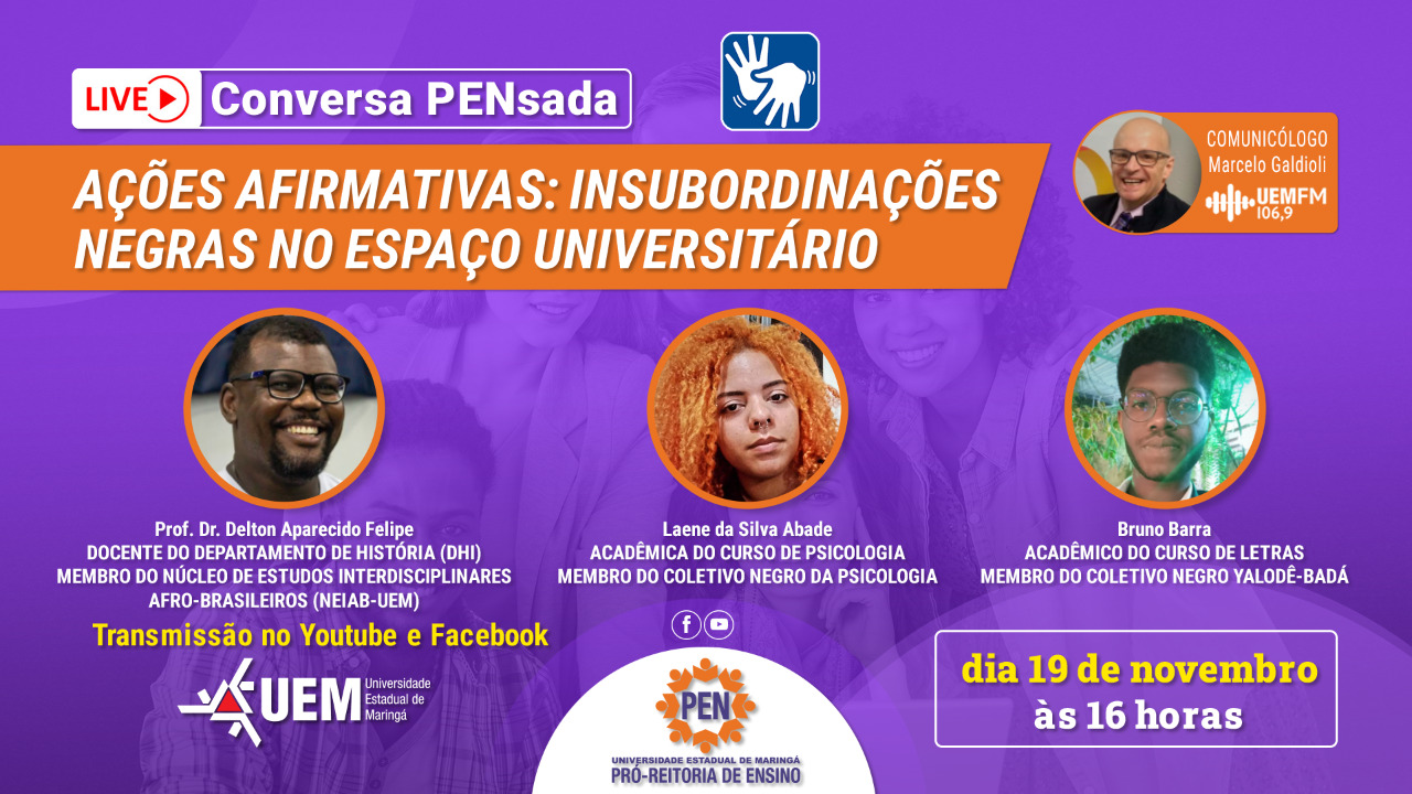 Conversa PENsada discute insubordinações negras no espaço universitário uemfm Notícias 18 Novembro 2021 Acessos: 1077