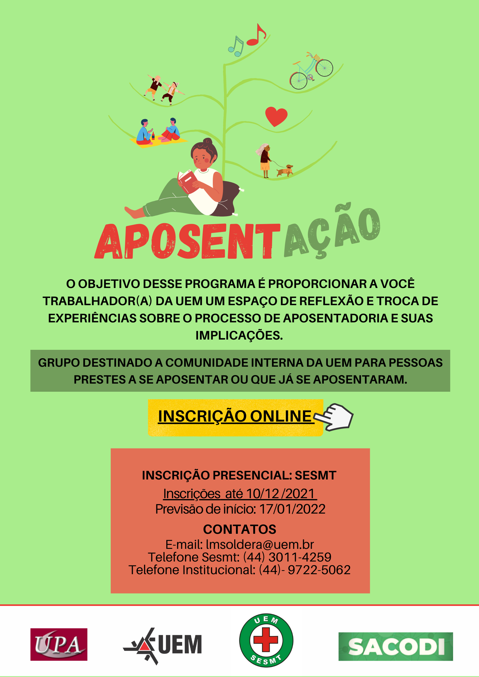 Abertas inscrições para participar de grupo sobre aposentadoria uemfm Notícias 16 Novembro 2021 Acessos: 1057