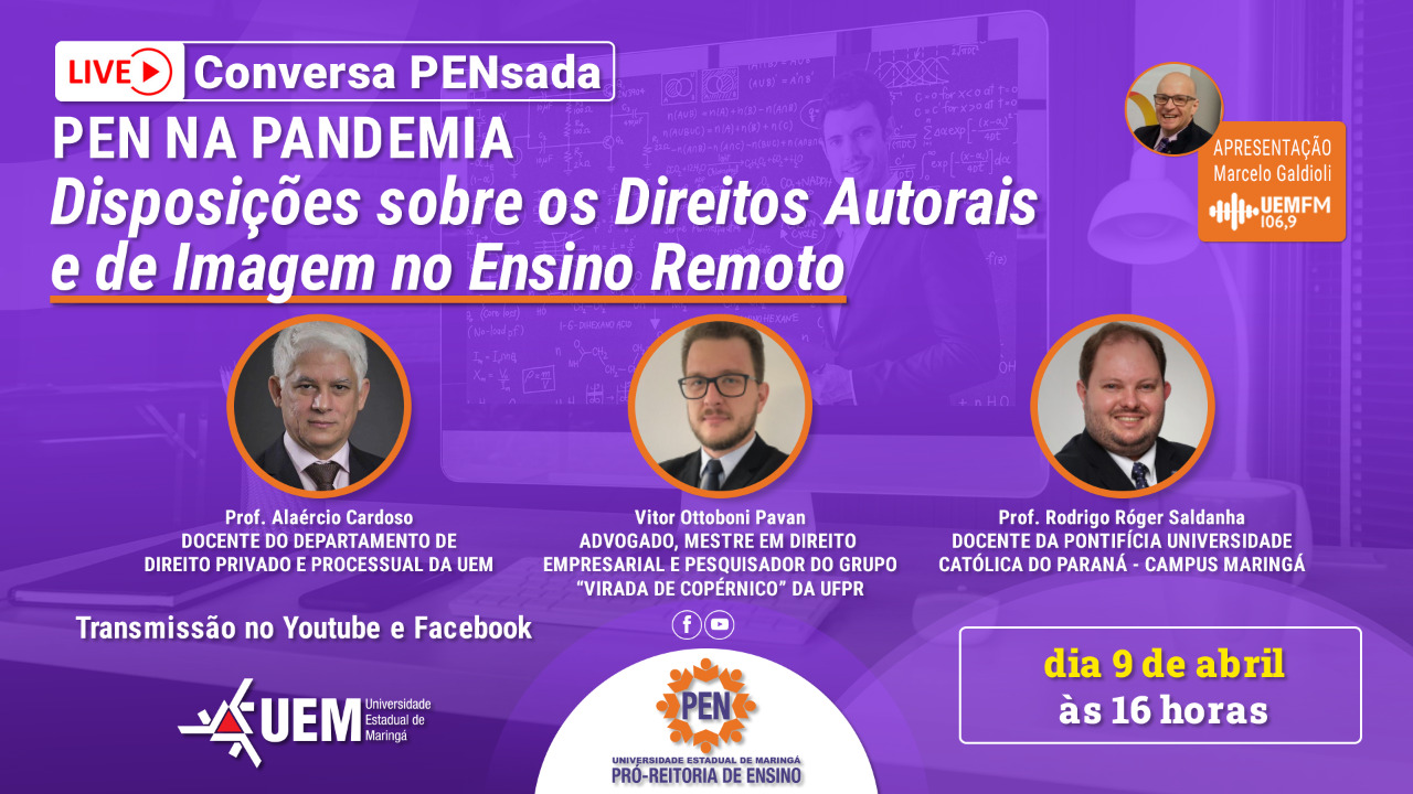 Conversa PENsada discute direitos autorais e de imagem no ensino remoto uemfm Notícias 08 Abril 2021 Acessos: 1161