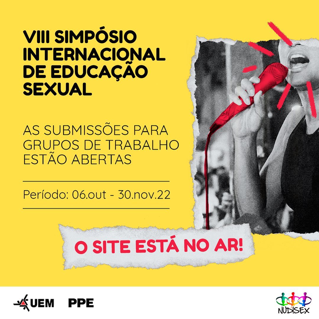 Últimos dias para inscrições de GTs no 8° Simpósio de Educação Sexual uemfm Notícias 23 Novembro 2022 Acessos: 1003