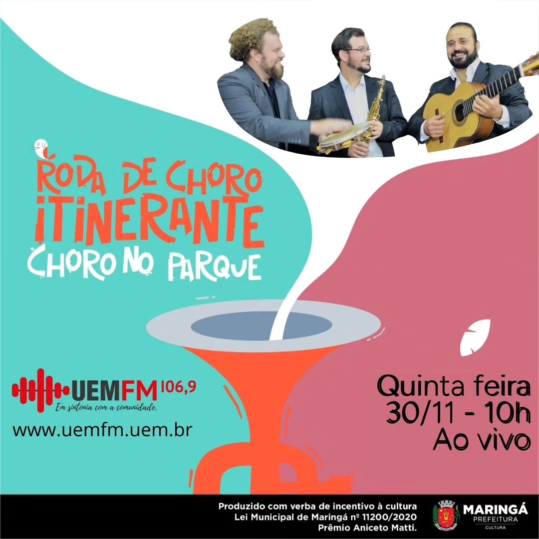 Neste domingo (03), o grupo musical de Choro Maraka Trio se apresenta no Parque do Ingá. A Roda Itinerante Choro no Parque é um projeto contemplado pelo prêmio Aniceto Matti e realizado todos os domingos, às 10:30, sempre no mesmo local. No programa UEM FM Entrevista de hoje, apresentado pelo Comunicólogo Marcelo Galdioli e a Acadêmica de Comunicação e Multimeios Mari Parma, contou com a participação do grupo. Os participantes foram os integrantes Rafael Marinho, Andro Gustavo e Isaías Alves.