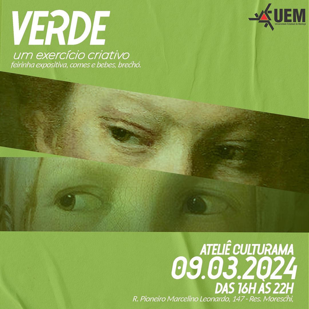 Estão abertas as inscrições, até o dia 1 de março para a a exposição “VERDE - um exercício criativo”. A exposição acontecerá no dia 9 de março, no Ateliê Culturama. Artistas maiores de 15 anos podem se inscrever, com trabalhos individuais ou coletivos. O requisito para a exposição é que o trabalho possua a cor verde na composição. Para mais informações, edital da exposição
