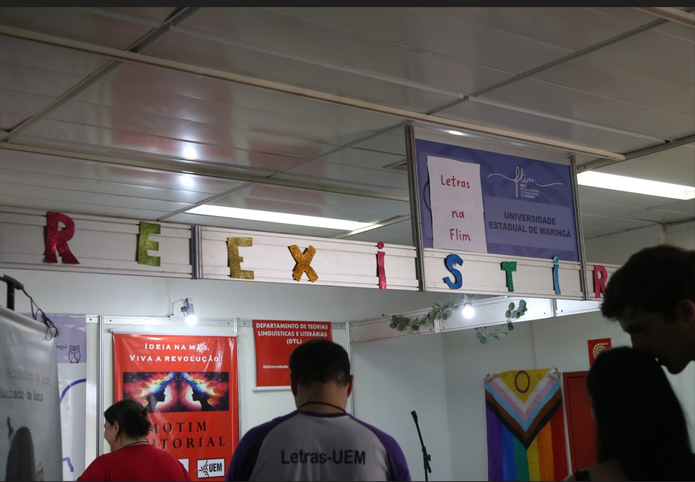 O estande “Resistir” apresenta projetos de pesquisa, ensino e extensão nas áreas de literatura, arte e da cultura da UEM
